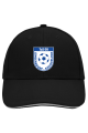 Dieses Cap ist aus strapazierfähigen Baumwollgewebe gefertigt, welches in Form der 6-Panel-Form geschnitten ist. Der Schirm ist mit einer kontrastfarbigen Biese ausgestattet. Verschlossen wird die Kappe über eine Textillasche mit Messing-Schließe, über welche die Kopfweite stufenlos eingestellt werden kann. Für erhöhten Tragekomfort sind die einzelnen Panele mit ventilierenden Öffnungen ausgestattet.